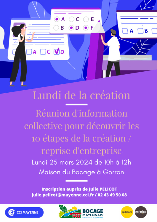 Sur inscription auprès de Julie PELICOT : julie.pelicot@mayenne.cci.fr ou par tel au 02 43 49 50 08