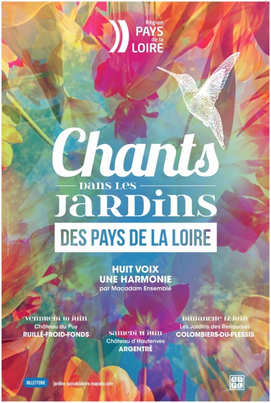 Avec la belle saison, les jardins des Pays de la Loire s’ouvrent une nouvelle fois au public… en musique ! En partenariat avec Macadam Ensemble et l’Association des parcs, jardins et paysages des Pays de la Loire, la Région a imaginé la tournée d’un ensemble vocal de 8 interprètes a cappella dans 15 nouveaux lieux remarquables des Pays de la Loire. L’occasion de valoriser le patrimoine des parcs et jardins du territoire tout en invitant à la découverte d’une performance artistique. 3 jardins de la Mayenne, ouvrent ainsi exceptionnellement leurs portes au public le temps d’une visite et d’une représentation du 10 au 12 juin prochains.