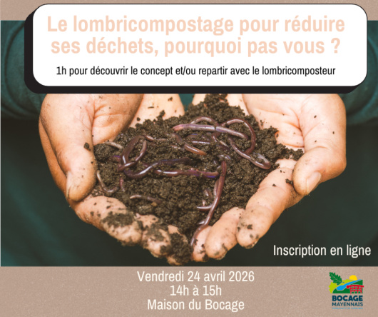 La Communauté de Communes du Bocage Mayennais propose gratuitement un lombricomposteur aux habitants du territoire et dans la limite d'un équipement par foyer. Une réunion d'information d'1h est obligatoire pour apprendre à bien démarrer et gérer son lombricomposteur.