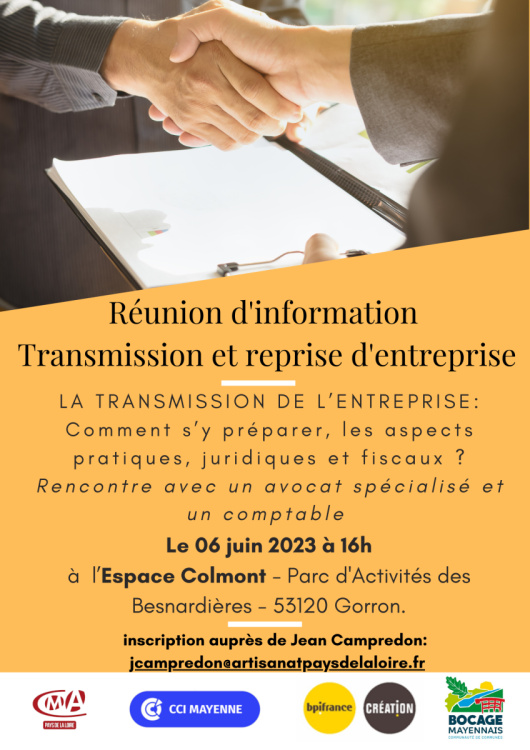 Information : Réunion d'information Transmission et reprise d'entreprise