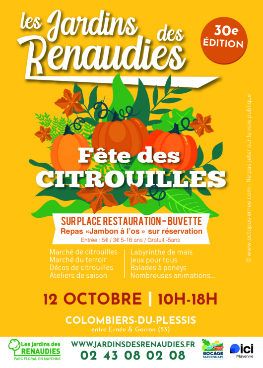 Aux Jardins des Renaudies, la Fête des Citrouilles fait partie des rendez-vous incontournables. 2025 a une saveur un peu particulière … et oui, c’est la 30ème édition ! Une belle occasion pour faire la fête !