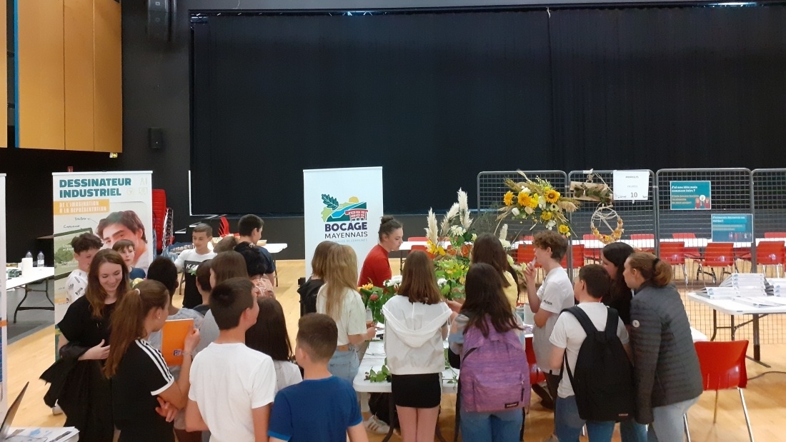Comme à l'accoutumée, les 4 colléges du territoire ont participé à cette journée de découverte des métiers. En classe de 5ème, 4ème ou 3ème, les élèves étaient 250 à circuler de stand en stand et à s'essayer à différents métiers le temps de quelques minutes. Chaque jeune est resté 1h30 sur le salon.