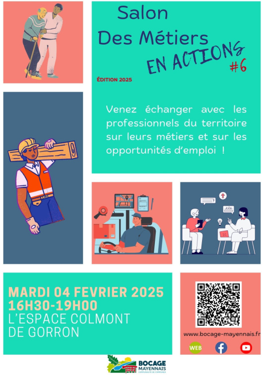 Le salon des Métiers en Actions du Bocage Mayennais ouvrira ses portes le Mardi 4 février 2025, de 16h30 à 19h00, à l’Espace Colmont de Gorron.