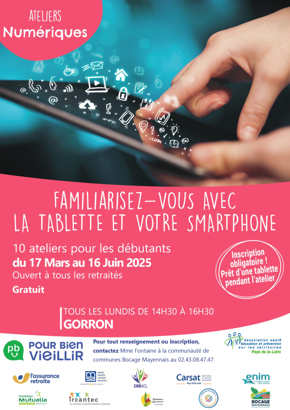 Renseignements complémentaires et inscription auprès de Mme Fontaine à la Communauté de communes Bocage Mayennais au 02.43.08.47.47
