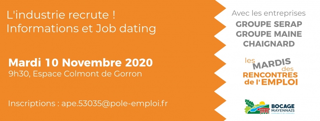 Si nous vous attendons nombreux, le contexte sanitaire actuel nous contraint à vous demander de vous inscrire. Pour ce faire, contacter votre conseiller Pôle Emploi, Mission locale ou Cap Emploi ; ou bien inscrivez-vous directement par mail à : ape.53035@pole-emploi.fr