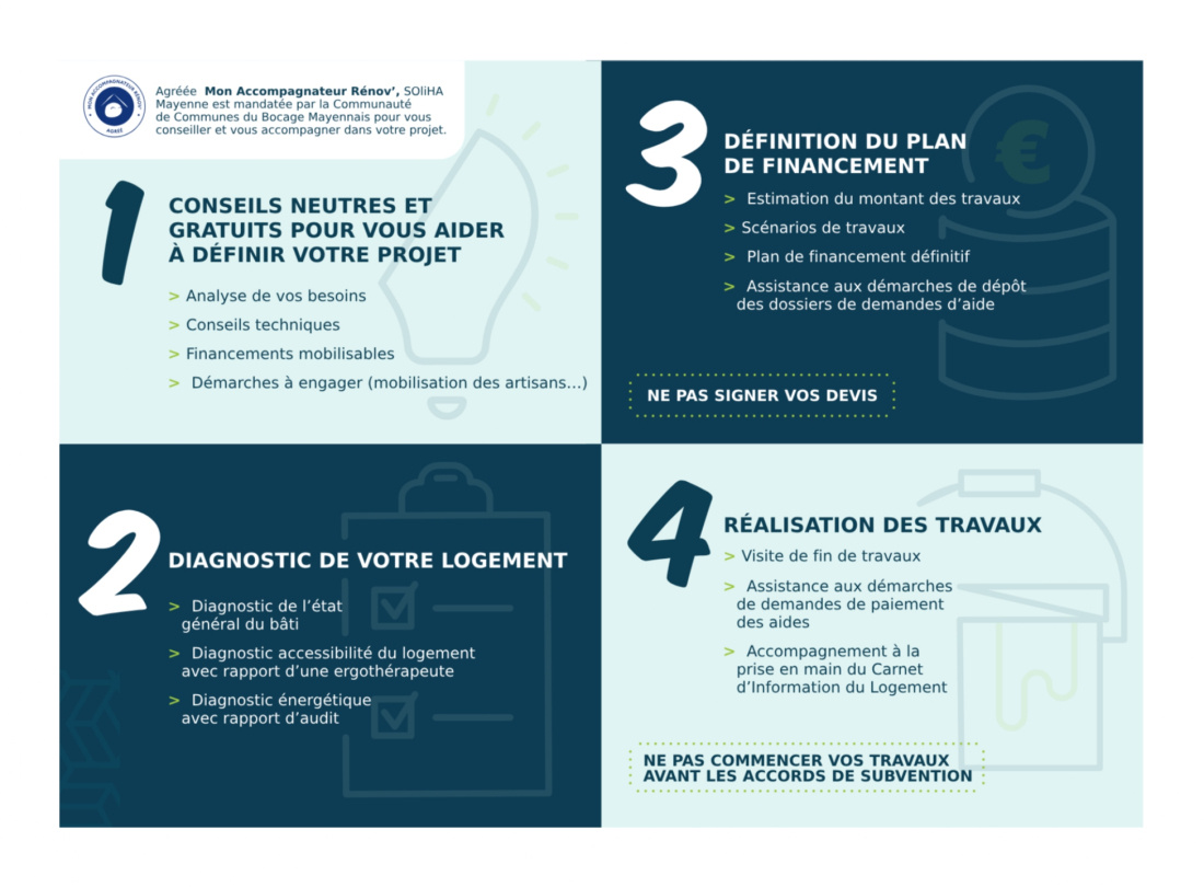 Soliha est agréé Mon Accompagnateur Rénov', sa prestation est prise en charge par la Communauté de communes du Bocage Mayennais sous condition.