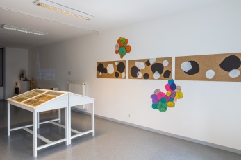 En effet, les oeuvres sonores et plastiques réalisées en classes ont été exposées entre avril et mai 2022, en même temps que l'exposition de Sarah Lück et Lou Roy (voir photos ci-dessous).