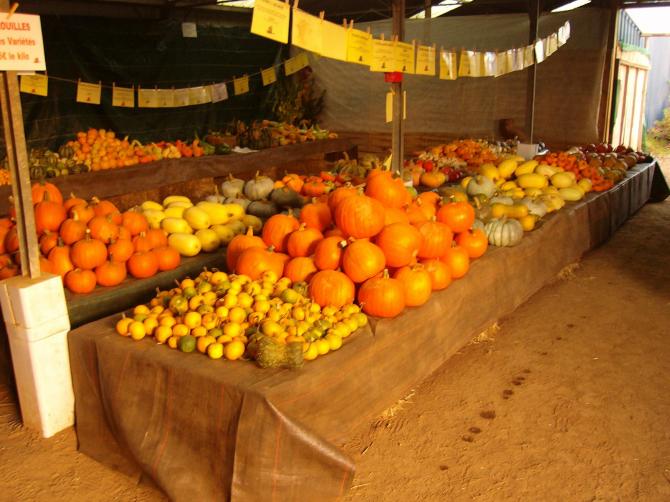Événement phare et haut en couleurs de la saison pour les Jardins. : marché de citrouilles et autres courges. Les 80 variétés sont cultivées ici par nos jardiniers. Décos de citrouilles dans le parc.