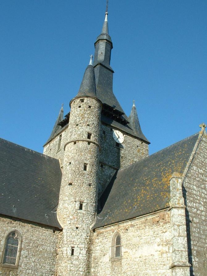 L'église est l'un des rares exemples d'une construction totale des XVe et XVIe siècle. Elle a été construite sur les fondations d'un premier édifice du XIIe siècle. Les matériaux utilisés pour sa construction et empruntés aux carrières de granit du pays, donnent à l'ensemble de l'édifice surmonté d'une tour imposante flanquée de quatre clochetons et d'une aiguille effilée, un aspect à la fois massif et élégant. A l'intérieur, le Maître-Autel est un remarquable ouvrage de Joseph Le Brun. Il est daté du XVIIIe siècle, et est classé Monument Historique, tout comme deux autres retables et une chaire.*