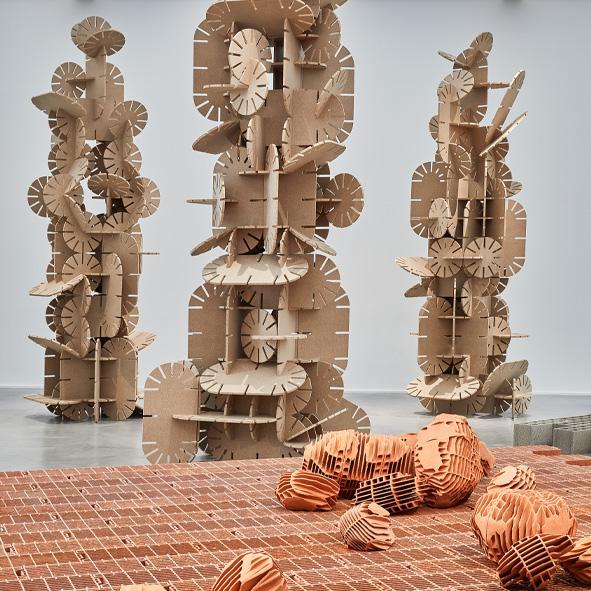 Brique, contreplaqué, PVC, acier… les matériaux usinés se déploient tel un organisme vivant, questionnant notre relation à l’architecture. En jouant sur le décalage des échelles, et en confrontant l’esthétique d’un monde virtuel à celle d’un savoir-faire plus artisanal, Vincent Mauger crée des espaces à la fois familiers et étrangement nouveaux, où l’artifice rencontre le vivant.