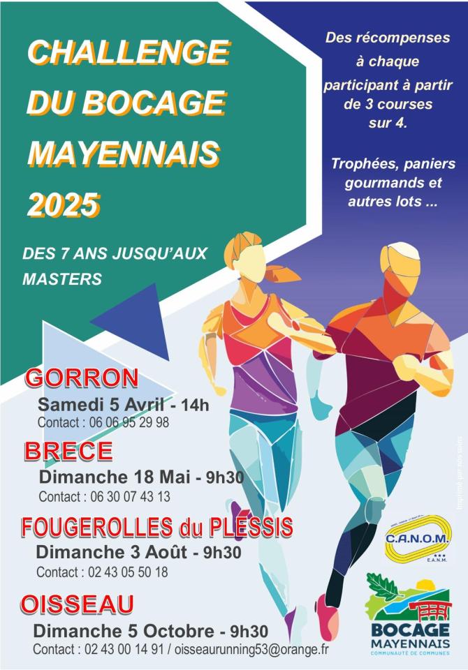 Le Challenge du Bocage Mayennais, ce sont 4 courses entre Avril et Octobre 2025.