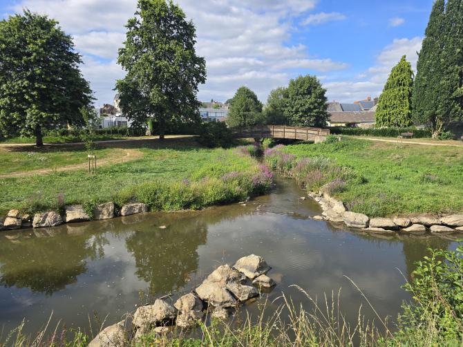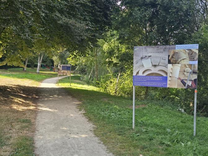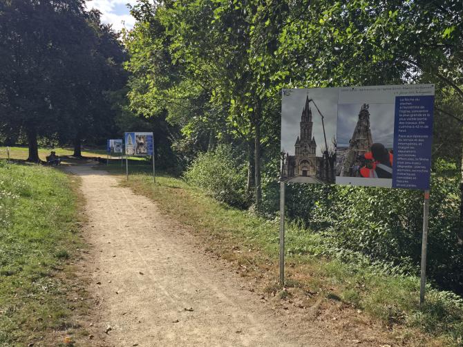 Située sur La Balade Saint-Laurent, cette exposition à ciel ouvert ponctue le petit chemin qui longe la rivière : au fil de votre promenade, laissez-vous surprendre par de grands panneaux photo retraçant, en images, les étapes marquantes de la rénovation de l’église de Gorron — une façon originale de mêler découverte du patrimoine et balade nature.