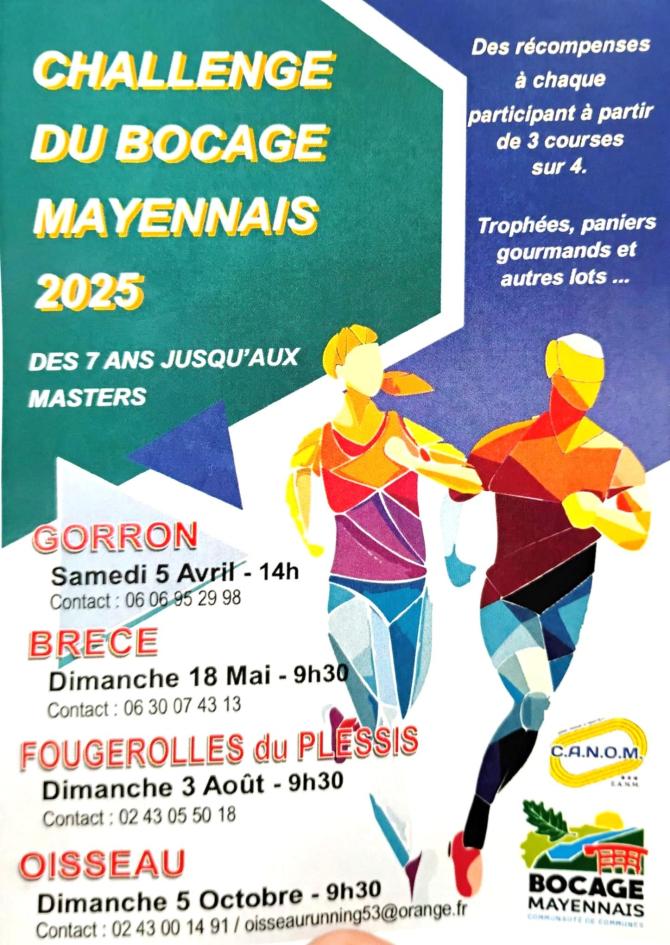 C'est aussi la première course de l'année pour démarrer la saison du Challenge du Bocage Mayennais. Au total, ce sont 4 courses entre Avril et Octobre 2025. Alors tous à vos baskets et faites vous plaisir !