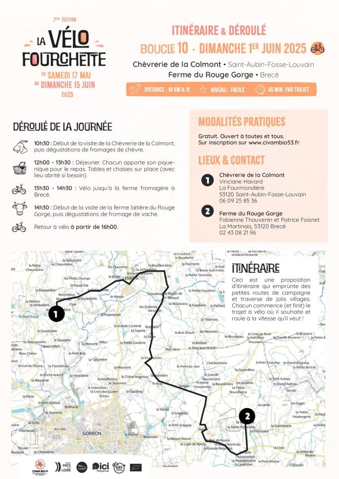 Dimanche 01 juin 2025 : de Saint-Aubin-Fosse-Louvain (Chèvrerie de la Colmont) à Brecé (Ferme du Rouge Gorge)