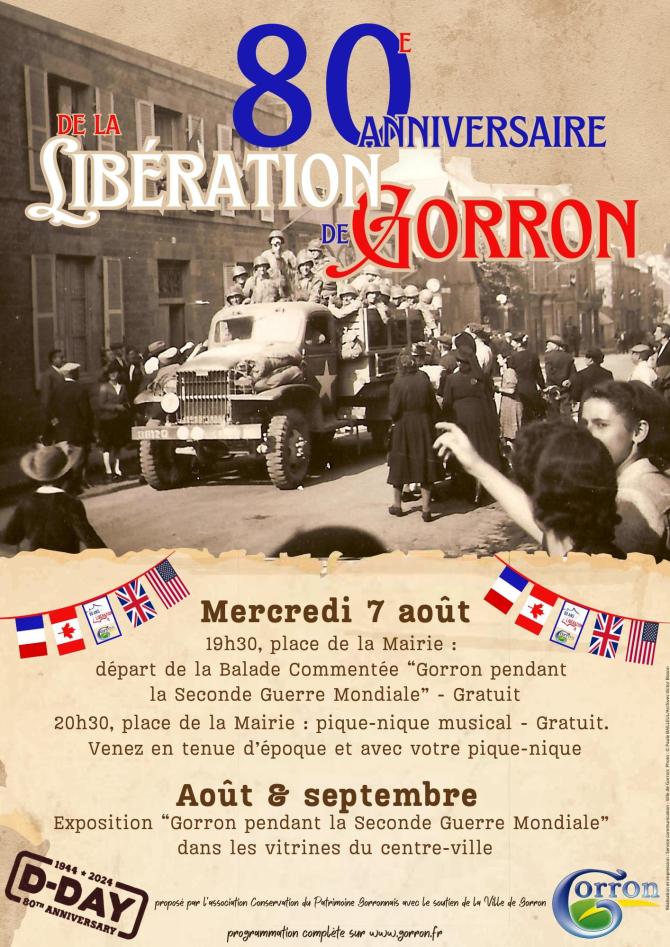 Il y a 80 ans, Gorron était libérée. Pour fêter et commémorer le souvenir de cet événement, l'Association Conservation du Patrimoine Gorronnais vous présente une exposition dans plusieurs vitrines du centre-ville, de début août à fin septembre. Par thématiques, retrouvez des photographies, objets et documents sur Gorron pendant la Seconde Guerre mondiale.