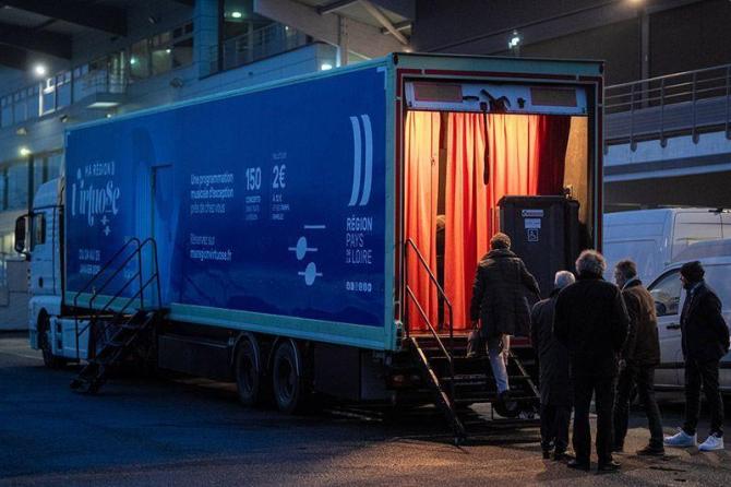 Installez-vous confortablement dans le camion spécialement transformé en salle de concert itinérante.
