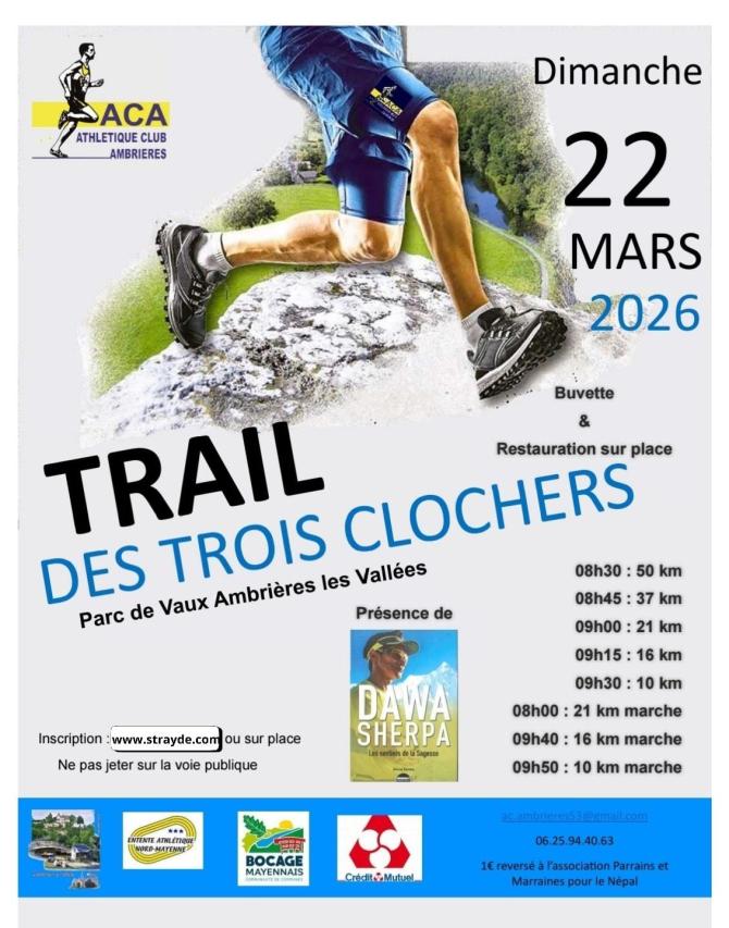 Le Trail des Trois Clochers fait son grand retour et aura lieu le Dimanche 22 mars 2026.